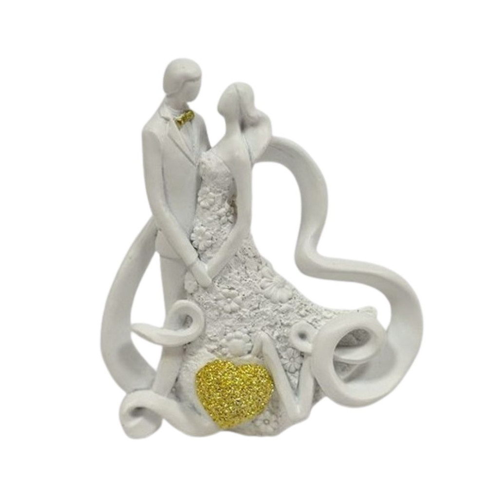 Noivos brancos com 12 cms Love com coração em dourado